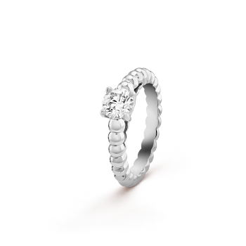 The timeless, pure aesthetic of the Icône solitaire accentuates the diamond in all its sparkle. At the center of a glittering halo, a diamond reveals the intensity of its fire, paying homage to Van Cleef & Arpels’ passion for the most beautiful stones.