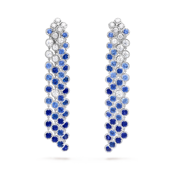 The High Jewelry Palmyre creations stream with diamonds with exquisite fluidity. They blend with blue or pink sapphires on an openwork structure that accentuates their plays of light. A reflection of the Maison’s tradition of excellence, gemstones are carefully selected to create a harmonious color gradient that sparkles on the skin.