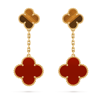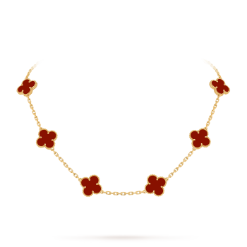 Magic Alhambra necklace, 6 motifs 18K yellow gold, Carnelian, Tiger Eye