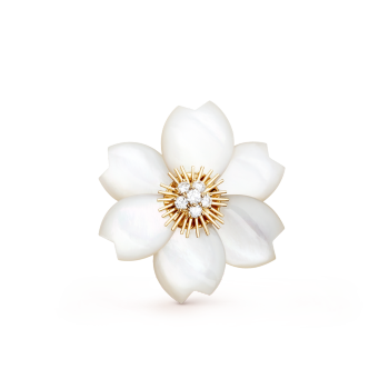 Rose de Noël clip, large model 18K yellow gold, Diamond, Mother-of-pearl