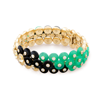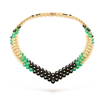 The Bouton d'or® collection is inspired by the curved lines of the paillette motif, a jewelry design created by Van Cleef & Arpels in the late 1930s. Reinterpreted today, it lends itself to plays of association and color to create feminine necklaces, rings, bracelets and earrings.