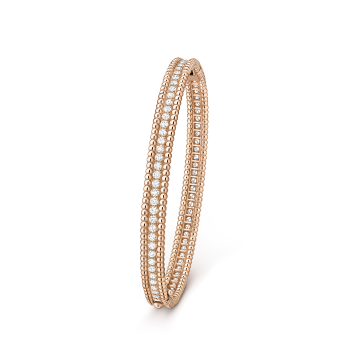 Sparkling round diamonds adorn the Perlée® diamonds creations. The natural beauty of the precious stones enters into dialogue with the brilliance of the golden beads.