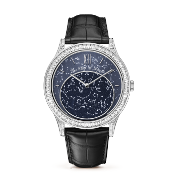 An invitation to daydream, the time is revealed over a Parisian sky. Driven by a Quantième de Saison movement, the dial depicts the actual position of stars over the city, performing an imperceptible rotation over a year.