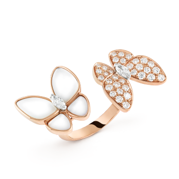 A symbol of renewal and resilience, the plum blossom has the unusual characteristic of blooming in winter. Its blossoming heralds the coming of spring and conveys the idea of vitality and renewed energy. The iridescence of white mother-of-pearl expresses the delicate nature of the five rounded petals. The motif blossoms on a rose gold bracelet that adorns the wrist with a precious flowering. As a pendant, it gently illuminates the hollow of the neck.
