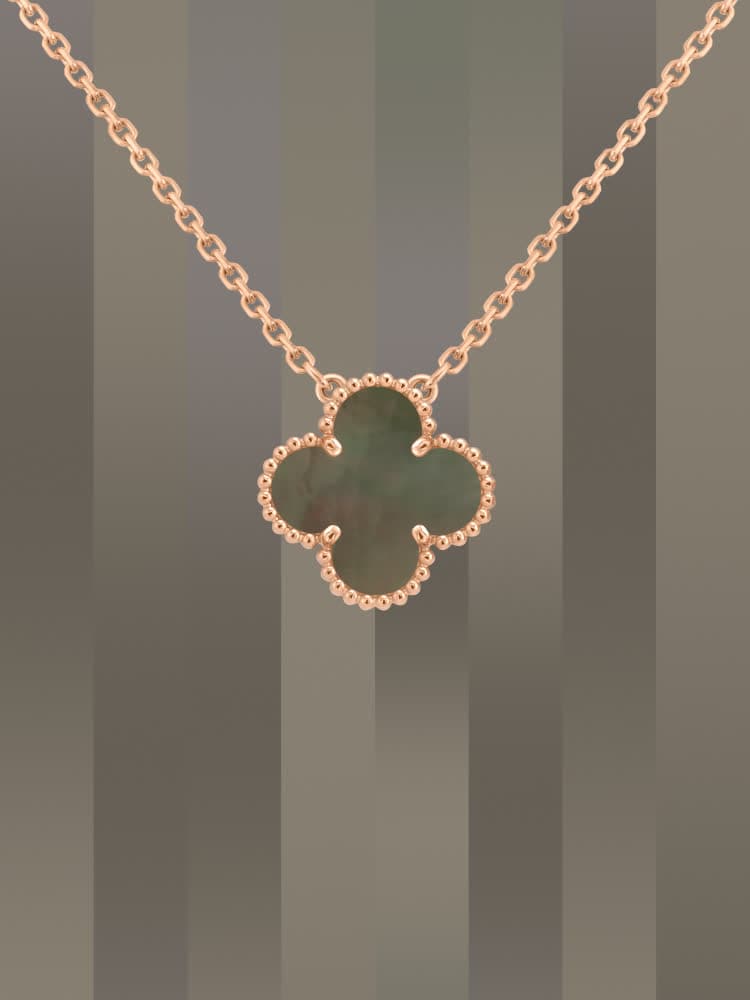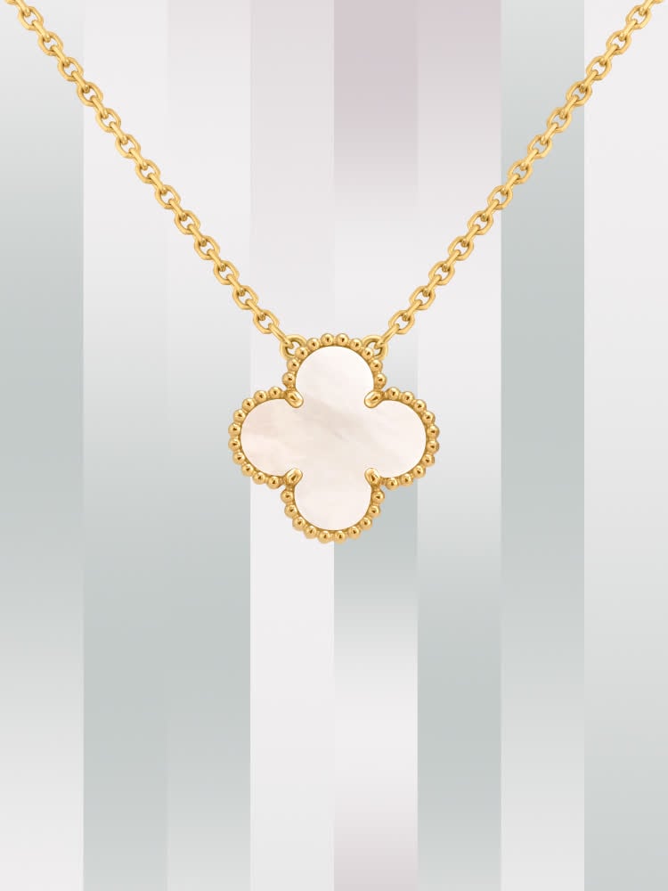 Sometimes white, sometimes gray, pink, or golden, mother-of-pearl distinguishes itself through its iridescent shimmer that ranges from pink to green. The four variations of mother-of-pearl have adorned the iconic Alhambra lucky charm since the 1980s.
