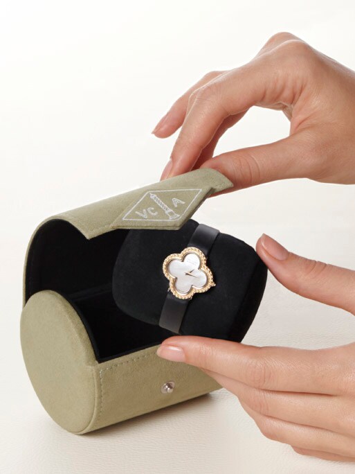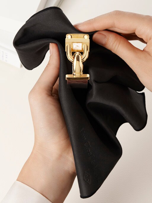 Van Cleef & Arpels梵克雅宝腕表的表链或表带采用皮革、金质或铂金等尊贵材质制成。皮革会随时间而自然老化。我们建议避免让皮革接触水分、化妆品或将皮革置于潮湿的环境中,以保护皮革。您可用软毛刷在温和的中性皂水中安全刷洗金质及铂金表链,然后以清水冲洗,再用软布擦干。清洁期间,请确保避免沾湿表壳。