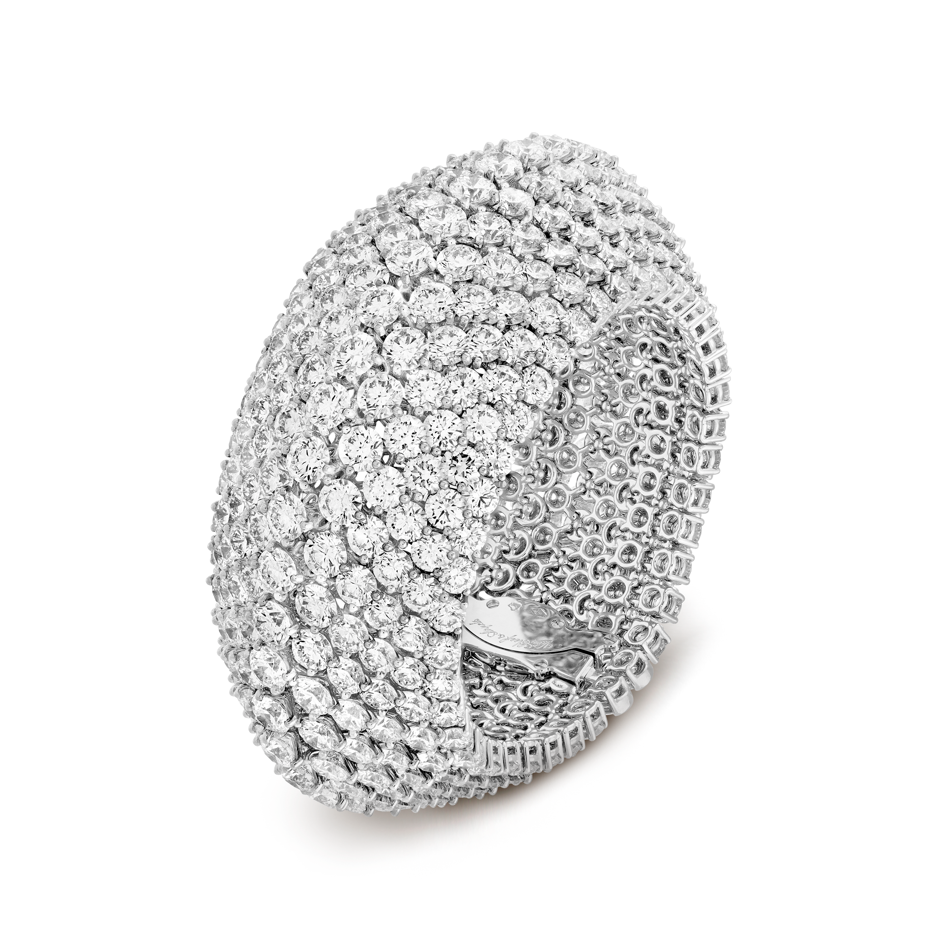 À Cheval高级珠宝系列的钻石璀璨纯净,令人心醉神迷。珠宝工匠施展精湛的镶嵌技术,令宝石以优雅的姿态毗邻而置,烘托出璀璨立体的效果。