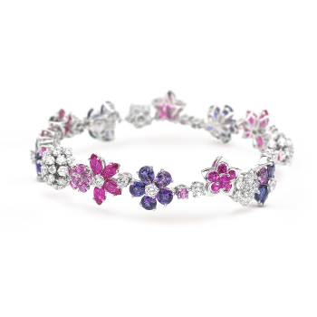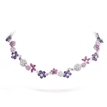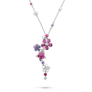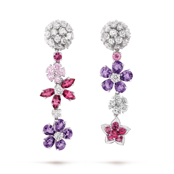 Van Cleef & Arpels梵克雅宝创作活泼优雅的Folie des Prés™高级珠宝系列,颂扬野生花朵的美态。作品镶饰圆形及梨形宝石,重现大自然多姿多彩及和谐的一面。