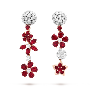 Van Cleef & Arpels梵克雅宝创作活泼优雅的Folie des Prés™高级珠宝系列,颂扬野生花朵的美态。作品镶饰圆形及梨形宝石,重现大自然多姿多彩及和谐的一面。