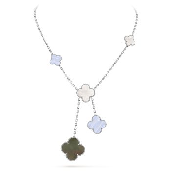 饰有单图案的Magic Alhambra长项链透过不同的尺寸和材质,以别具一格的方式呈现世家的标志性图案。这件珠宝作品采用可转换式设计,可以一条长项链或双重短项链等多种方式佩戴。