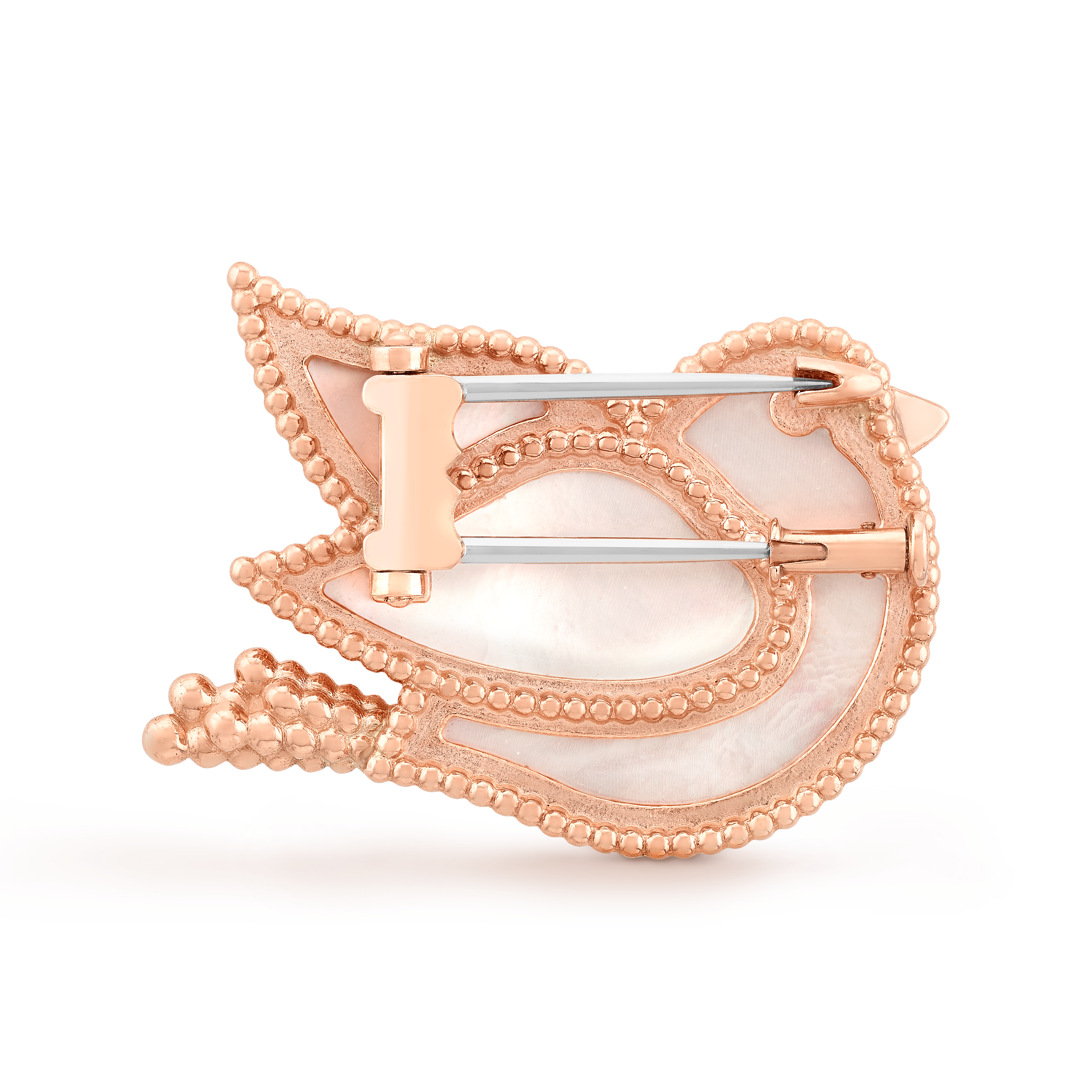 如今,全新胸针将18K黄金、珍珠贝母及装饰宝石巧妙结合,打造出栩栩如生的作品。世家标志性的圆珠饰边赋予作品更加优雅的轮廓。
