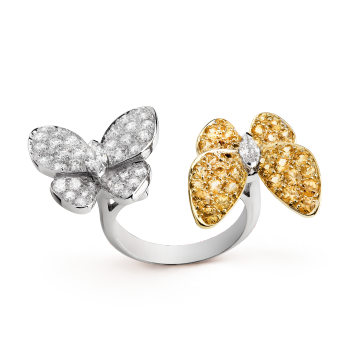 Van Cleef & Arpels梵克雅宝于Two Butterfly珠宝系列重新演绎世家所钟爱的主题。这些璀璨迷人的作品结合色彩与不对称设计,重新诠释了蝴蝶翩飞时的美态。