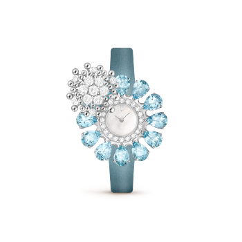 Fleurs d'Hawaï耳环 18K白金, 海蓝宝石, 钻石