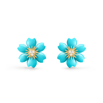 Rose de Noël吊坠,迷你款式 18K黄金, 绿松石, 钻石
