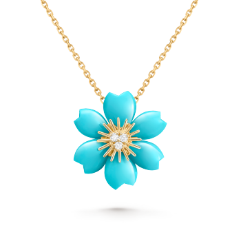 Rose de Noël耳环,迷你款式 18K黄金, 绿松石, 钻石