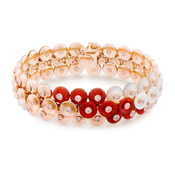 Bouton d‘or®系列的灵感源自Van Cleef & Arpels梵克雅宝于1930年代末创作的Paillette图案的弧形线条。世家结合夺目色彩与天然材质,创作出风格柔美的项链、戒指、手链及耳环,重新演绎此设计。