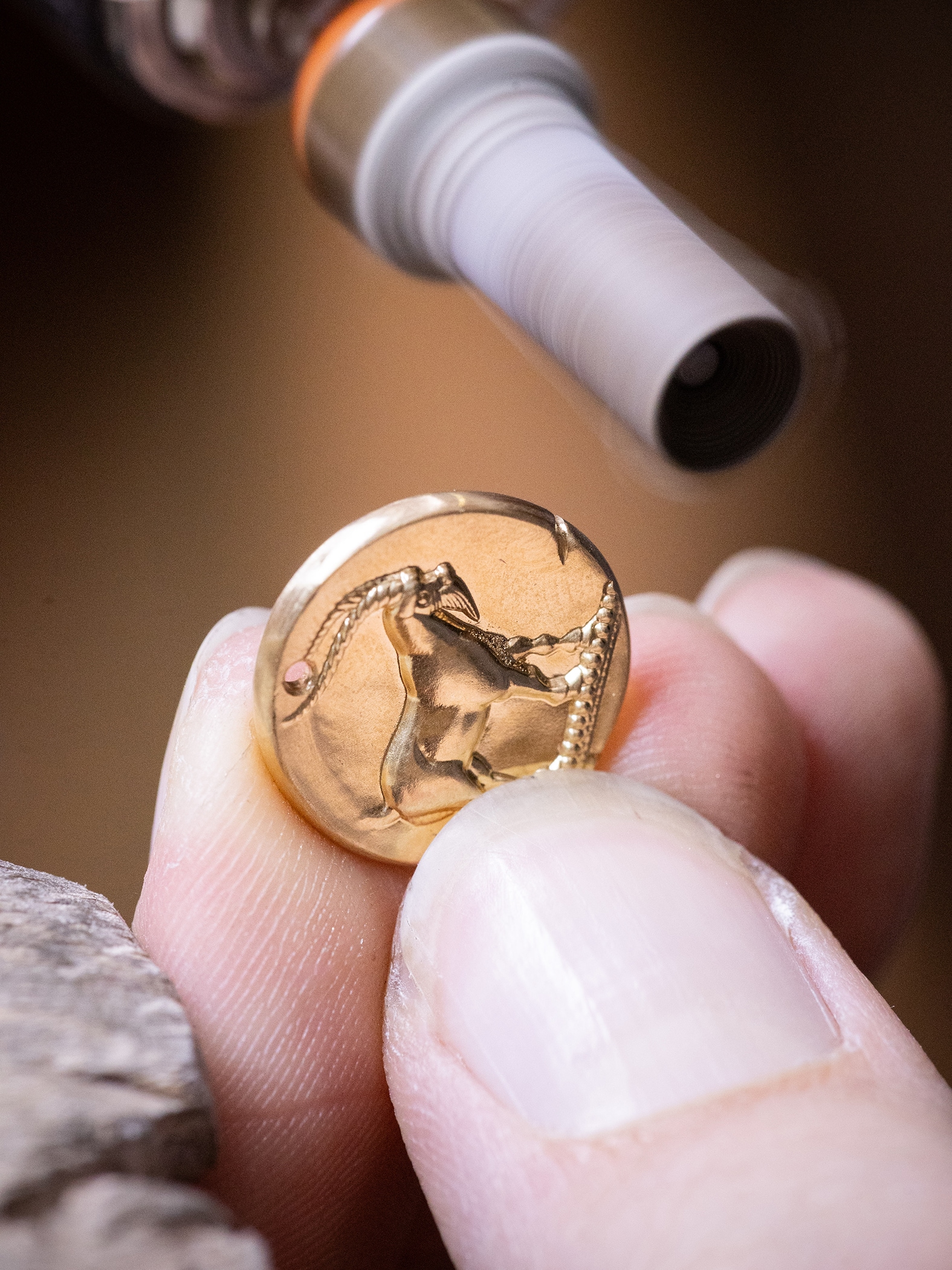 十二款Lady Arpels Zodiaque Lumineux女士腕表透过独家搭载的按掣亮灯模块重现闪烁的星光,以闪烁苍穹为灵感,牵动新的灵感涟漪。十二星座符号经过手工精雕细琢并镶嵌宝石,与明亮的蓝色珐琅背景形成对比,并与星空互相呼应。摩羯座是土象星座,具备坚毅和谨慎的特质。