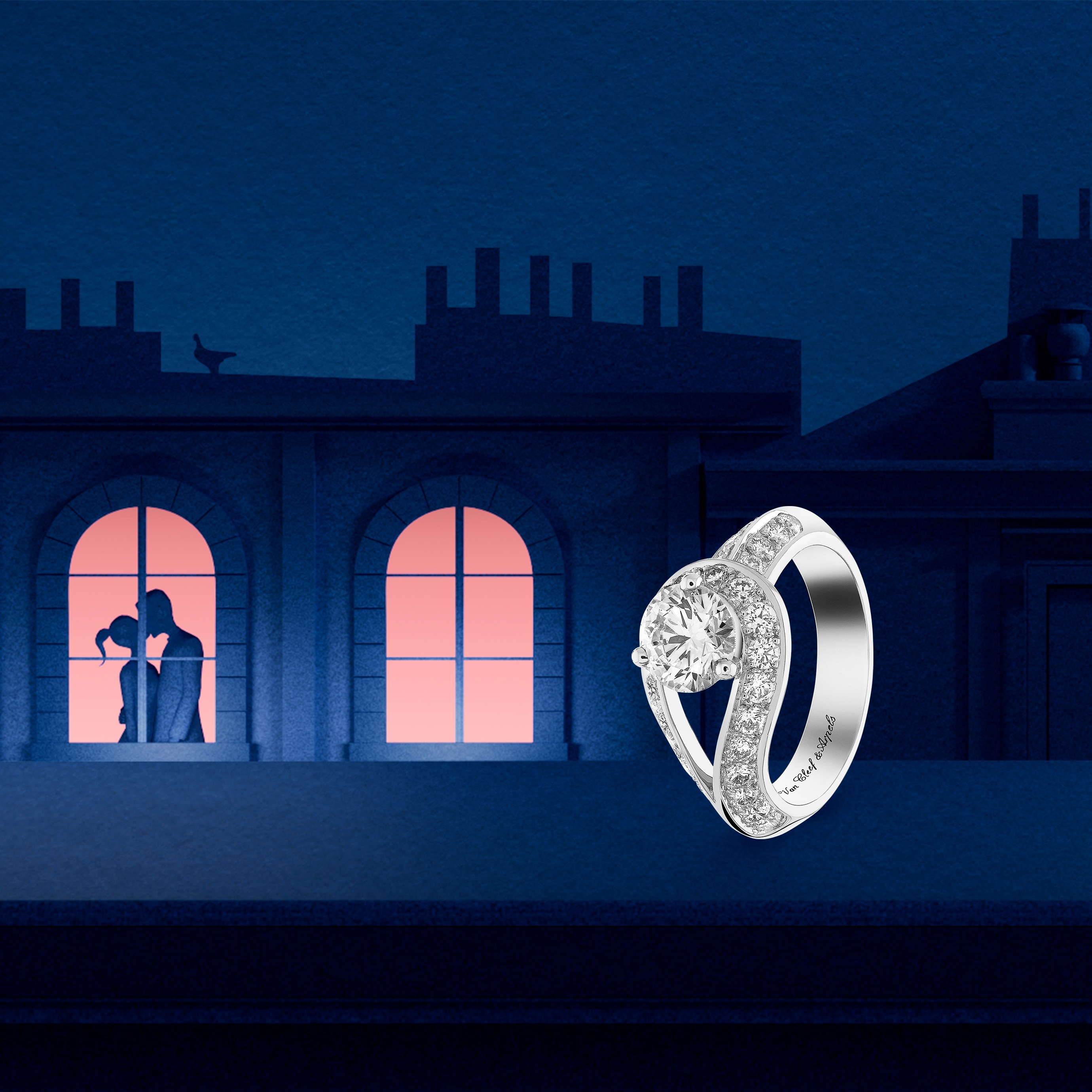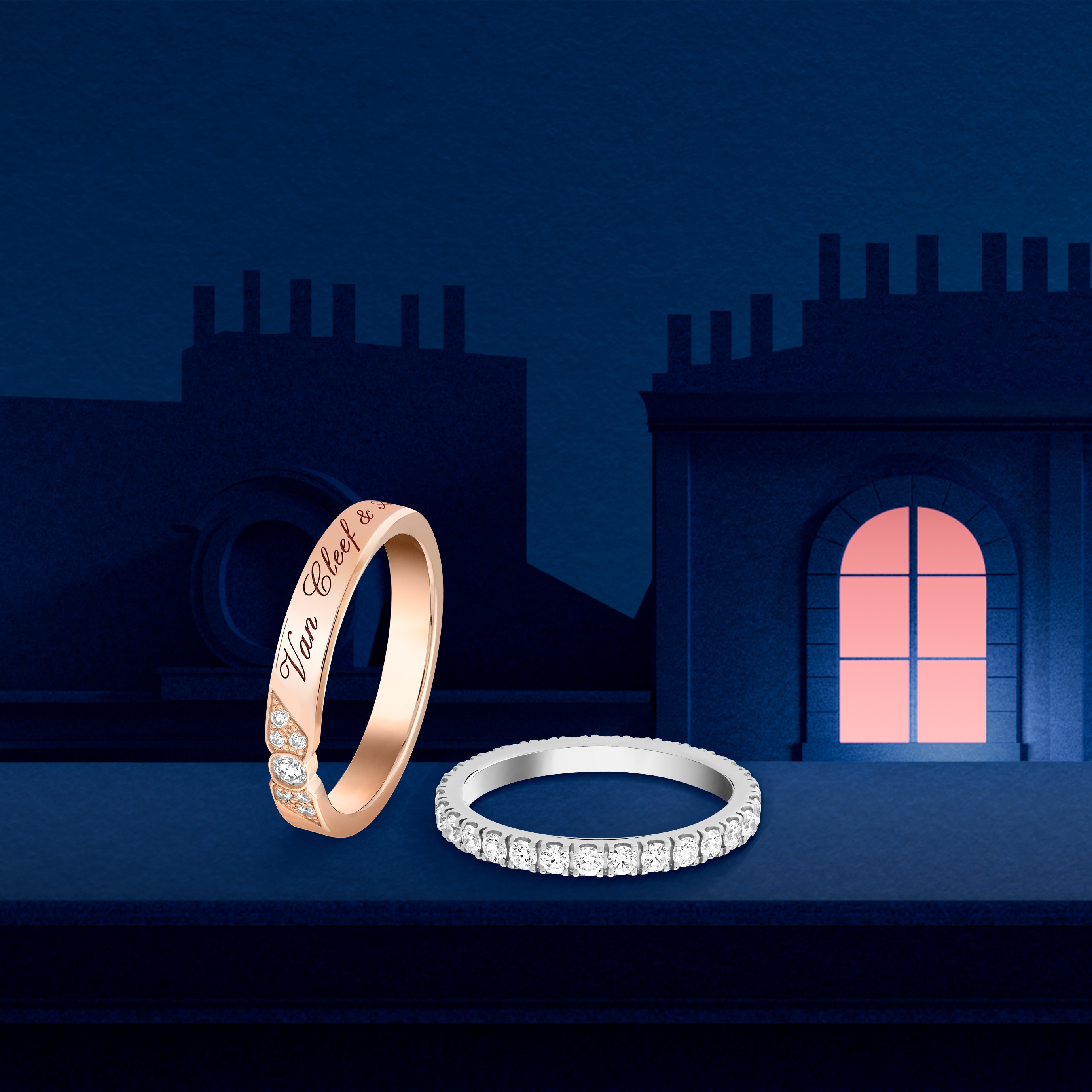 1906年,Van Cleef & Arpels梵克雅宝于芳登广场创建,缘起于艾斯特尔·雅宝(Estelle Arpels,又名Esther)与阿尔弗莱德·梵克(Alfred Van Cleef)的美好姻缘。自那时起,世家便始终致敬恋人之间珍贵的情感纽带。无论是婚戒、单颗宝石戒指、腕表,亦或袖扣,都为真挚誓约增添一抹熠熠光辉。