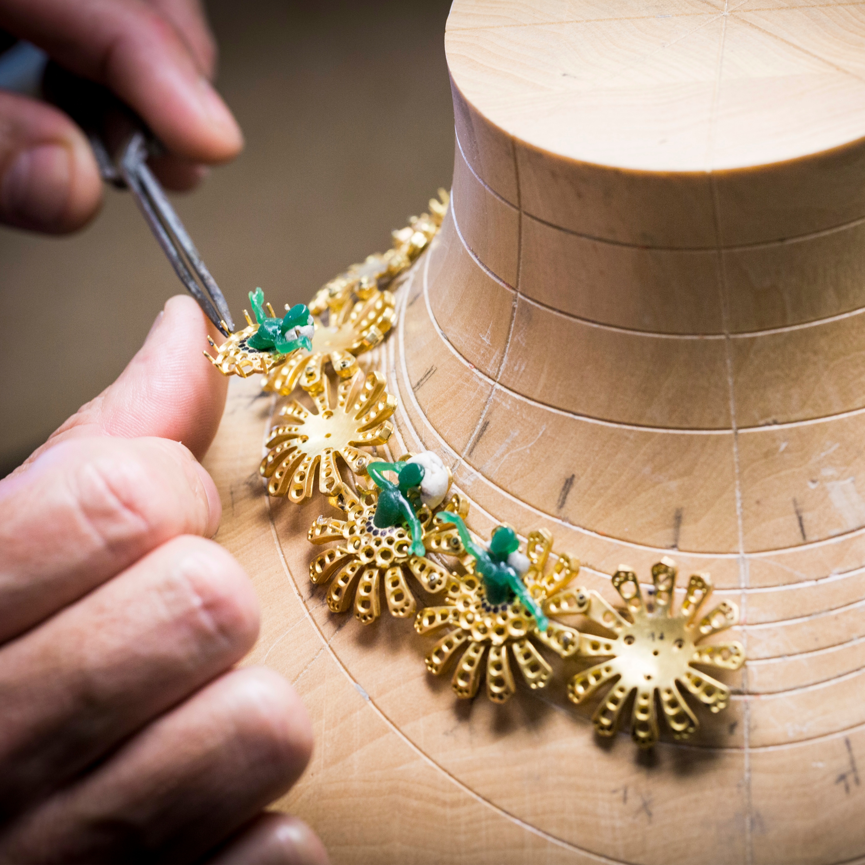 19世纪的工业革命以来,近代早期的冒险精神催生了许多精密机械的诞生,从而帮助人类探索更广阔的世界。自1906年诞生,Van Cleef & Arpels梵克雅宝始终以匠心独具的珠宝杰作,陪伴并跟随勇者踏上探索世界的征途。这种律动以别开生面的艺术表现一一呈现,比如人体的律动、曲线的优美、跳跃的倩影。自1941年以来,优雅的芭蕾舞伶(Ballerinas),在翩翩舞动中旋转的芭蕾舞裙(Tutu),或饰以璀璨宝石,或妆点金质珠片,赋予世家珠宝灵动活力。时至今日,舞蹈依然是世家无限的灵感泉源。