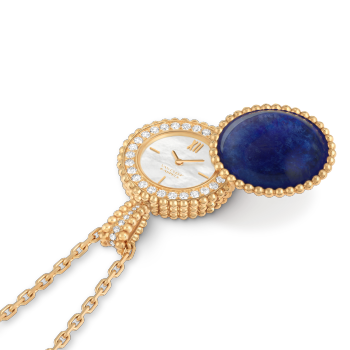 曲线优美、色彩丰富的吊坠搭配长项链佩戴,是一件真正雅述时光的珠宝作品。缓缓推开珠宝表盖,光阴乍现,含蓄间倾诉时光的秘密。