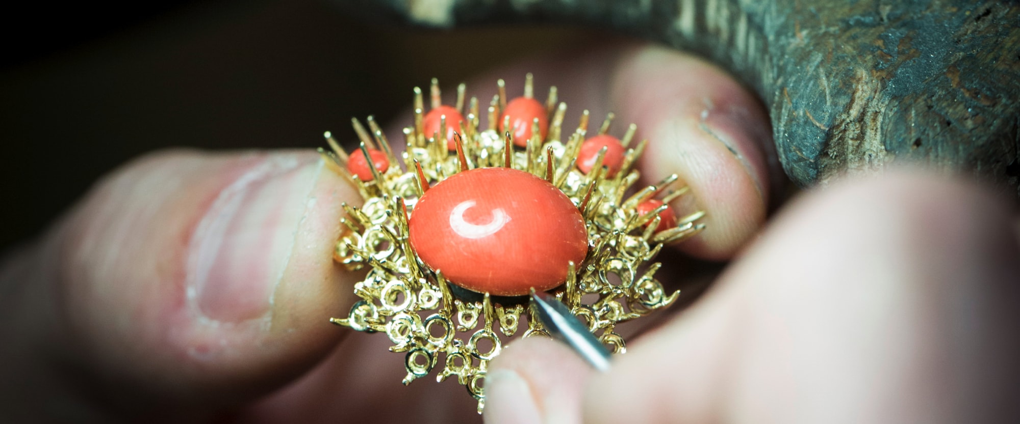自古以来,珊瑚一直被用于珠宝制作中,在全球各种文明的珠饰和护身符中都能找到它的身影。凯尔特人带着镶嵌珊瑚的头盔和剑参战,中国人将这种材质变成了小护身符,非洲国王将它用在华丽的服饰中。