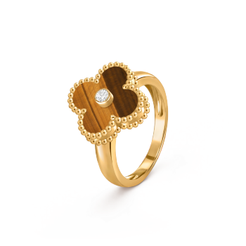 作为石英家族的一员,虎眼石层次交错,呈现有光泽的黄色和棕色波纹,宛若猫科动物的眼睛。在世家的作品系列中,Alhambra系列®四叶幸运系列作品使虎眼石特有的虹彩和变彩效果备受瞩目,在经典的四叶幸运图案中栩栩如生。
