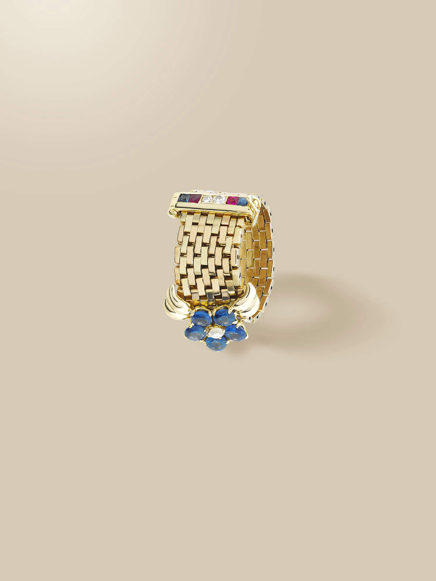 Ludo系列的扣环图案是彰显世家创造力的典范之作,向Van Cleef & Arpels梵克雅宝所钟爱的灵感源泉致敬。受高级定制时装的影响,它们呈现出褶皱、蝴蝶结或丝带的造型。扣环图案洋溢着大自然的活力,绽放成五彩缤纷、欢乐喜庆的花束。在各种装饰艺术作品中,它们变身为迷人的几何线条和图案。