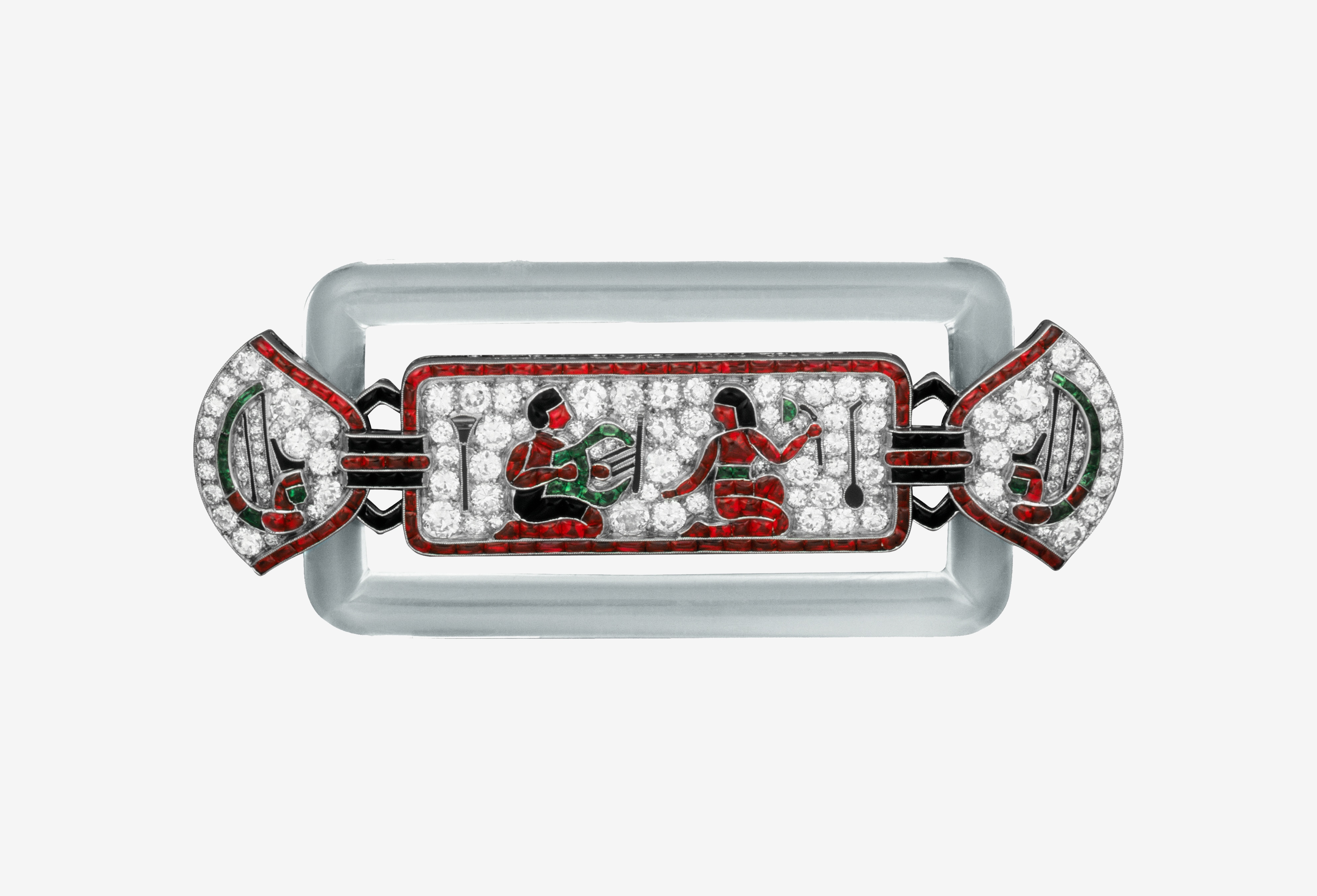 1922年,图坦卡蒙陵墓被挖掘,在欧洲掀起了一股东方主义的浪潮。世家从现代埃及文化风潮,以及日本、中国和印度的风格中汲取灵感。灵感源自非欧洲艺术的图案和全新材料被用来装饰珠宝作品和珍贵臻品。